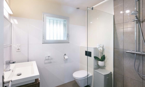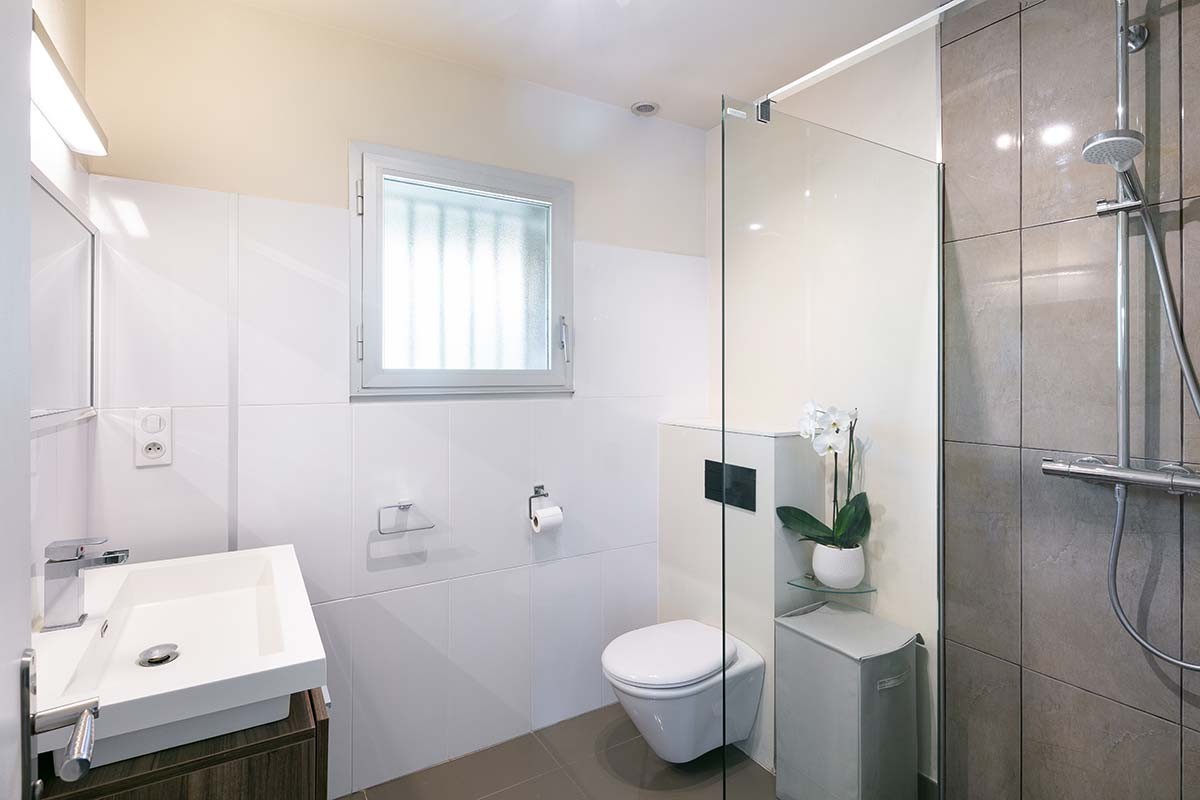 - Salle de bain 1 : WC, douche, vasque