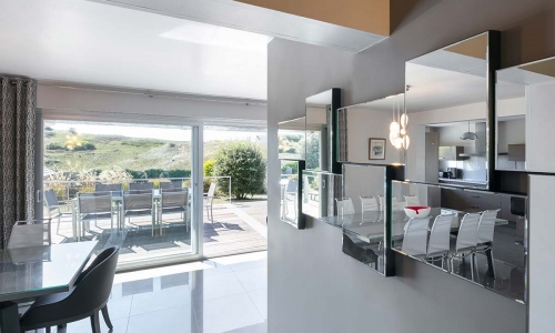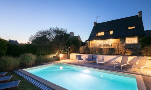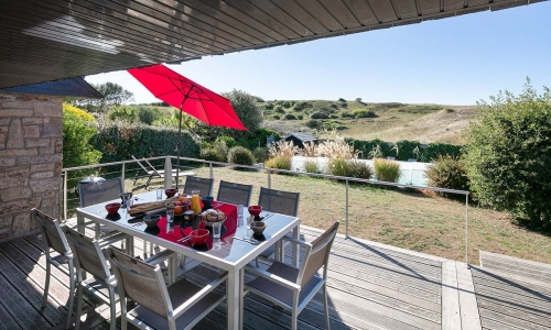 Maison 5 chambres rénovée totalement. Idéalement située à 30 m de la plage, très calme, décoration contemporaine, tout confort, piscine chauffée couverte ou non (piscine chauffée du mois de mars à mi octobre), plage de sable fin avec accès par le portillon du jardin , côte sauvage, terrain tennis et club nautique à proximité (200 m), cuisine américaine. 5 chambres. jardin clos, 2 places pour véhicules. Piscine totalement sécurisée.Maison très agréable à vivre. Maison classée 4 étoiles ****