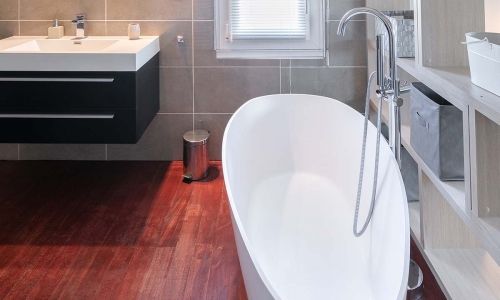 - La villa comporte 2 salles de bain et une salle d'eau. Les deux salles de bains sont à l'étage dont une faisant partie d'une chambre.