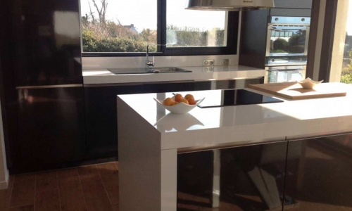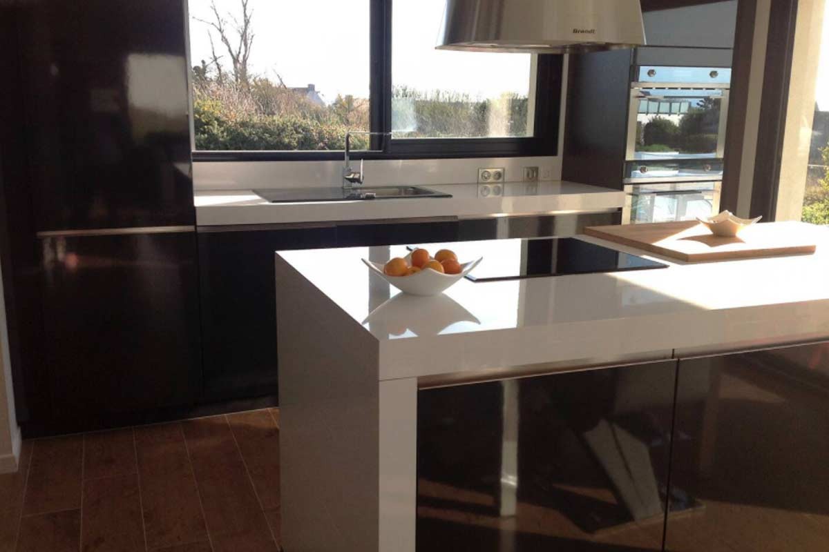 Idéalement située, décoration contemporaine, tout confort, très lumineuse, piscine chauffée couverte ou non (100% sécurisée), sauna, plages de sable fin à pieds, côte sauvage, terrain tennis et club nautique à proximité (300 m), cuisine américaine. 4 chambres. Vue sur mer et Ile de Groix.