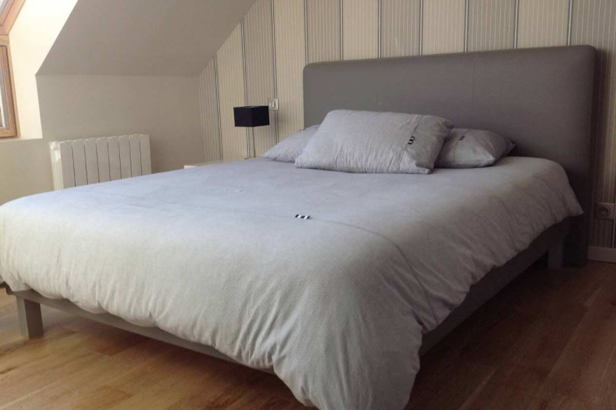 L'étage est composé de 4 chambres (literie neuve) dont 3 avec lit 160 cm (vue mer) et une chambre avec trois lits 90 cm, 1 lit bébé bois (+1 lit parapluie disponible et kit bébé :transat de bain,baignoire,chaise haute tripp trapp. Vous y trouverez également une salle de bain avec baignoire et vasque et une salle d'eau avec douche et vasque.Wc indépendant.