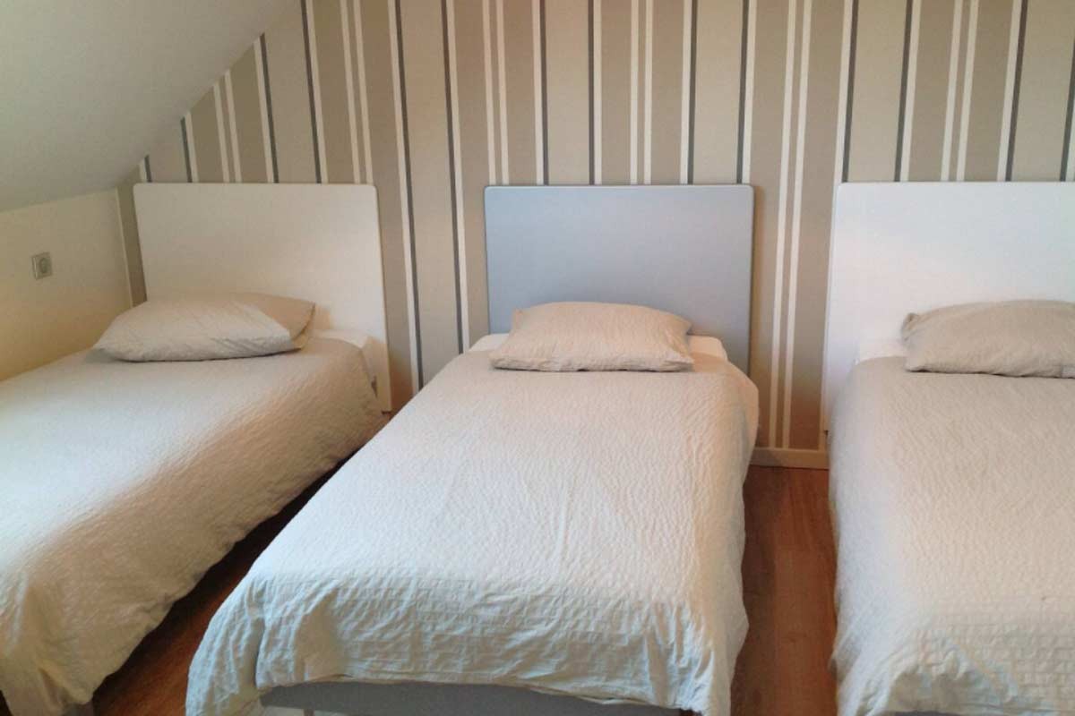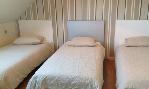 La maison comprend 4 chambres (literie neuve) dont 3 avec lit 160 cm (vue mer) et une chambre avec 4 lits 90 cm (dont 2 superposés)