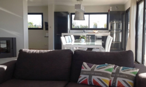 La Villa est exposée plein Sud donnant sur une terrasse bois de 70 m2 vue mer. La maison est aménagée avec des équipements contemporains et fonctionnels pour la rendre des plus agréable à vivre. Les plages de sable fin sont à 500 m de la maison.