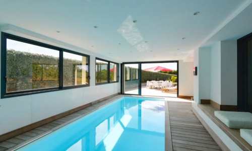 Sécurité assurée par une fermeture de la pièce piscine. Vous y trouverez également un cellier avec rangements, lave linge et sèche linge, un wc et une salle d'eau avec douche et vasque. S'y trouve également une salle de jeu avec billard et baby foot.